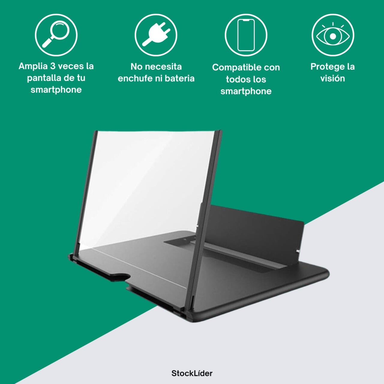 Utilização: Amplificação de ecrã de telemóvel para visualização otimizada.
